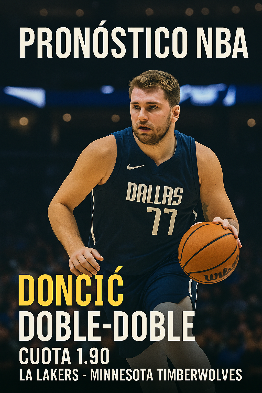 Partido: LA Lakers vs Minnesota Timberwolves Hora: 04:00 · 25 oct Pick: Luka Dončić doble-doble (cuota aprox. 1.90) 🧩 Contexto del encuentro Choque exigente con ritmo medio y defensas físicas…